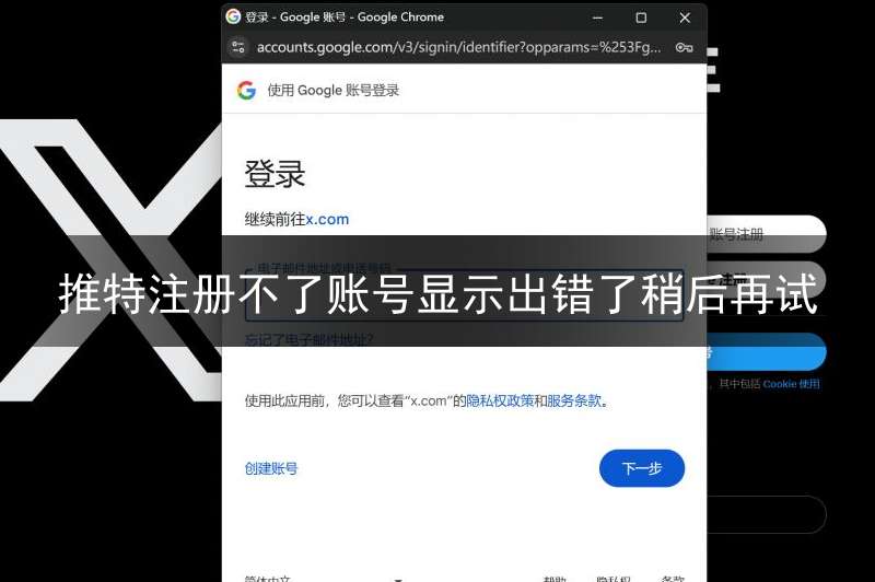 推特注册不了账号显示出错了稍后再试